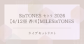 SixTONES セトリ 2026【4/12昼 香川】MILESixTONES|ライブセットリスト