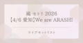 HOME 2024.06.28新着記事人気記事 嵐 セトリ 2026【4/6 愛知】We are ARASHI|ライブセットリスト 2026.04.07 Qoo10は推し活女子におすすめ!お得にグッズを買う方法&メガ割の活用術 2026.04.07 SixTONES セトリ 2026【4/4昼 静岡】MILESixTONES|ライブセットリスト 2026.04.06 WEST. セトリ 2026【4/6夜 福岡】唯一無二|ライブセットリスト 2026.04.06 WEST. セトリ 2026【4/6昼 福岡】唯一無二|ライブセットリスト 2026.04.06 嵐の歴代ライブ・イベント一覧|単独&参加公演まとめ 2026.03.012026.04.07 WEST. セトリ 2026【3/22夜 北海道】唯一無二|ライブセットリスト 2026.03.22 嵐 セトリ 2026【4/2 東京】We are ARASHI|ライブセットリスト 2026.04.02 SixTONESの歴代ライブ・イベント一覧|単独&参加公演まとめ 2025.11.032026.02.02 Hey! Say! JUMPの歴代ライブ・イベント一覧|単独&参加公演まとめ 2025.10.202025.11.20 \ おすすめ推し活4選 /推し活に最適な通販サイトGRL(グレイル)|友達紹介でお得に始めよう!推し活前の美容準備はアプリで完結!ネイルもヘアも簡単予約できるおすすめアプリ2選みんなの銀行の口座開設方法まとめ|キャンペーンで現金がもらえるスマホ銀行歩くだけでライブ遠征費を貯める方法|おすすめポイ活アプリ比較DVD / Blu-rayアルバムサブスクシングルセットリストドキュメンタリードラマ / 映画ポイ活 / お金管理ライブ / 舞台ライブ / 遠征作詞作曲推し活自分磨き雑誌