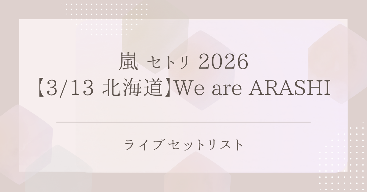 嵐の2026年ライブ「ARASHI LIVE TOUR 2026 「We are ARASHI」」(3月13日/ツアー初日)のセットリストをまとめています。