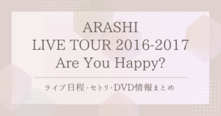 ライブ / 舞台ARASHI LIVE TOUR 2016-2017 Are You Happy?|ライブ日程・セトリ・DVD情報まとめ 「ARASHI LIVE TOUR 2016-2017 Are You Happy?」を徹底解説!ライブ日程、セトリ、公式YouTube動画やDVD収録内容を紹介します。 2026.04.09ライブ / 舞台