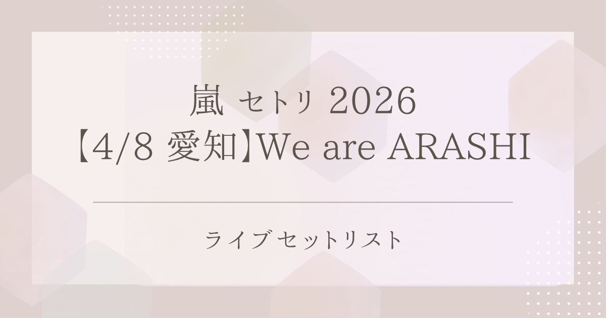 嵐の2026年ライブ「ARASHI LIVE TOUR 2026 「We are ARASHI」」(4月8日)のセットリストをまとめています。