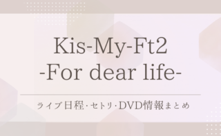 ライブ / 舞台Kis-My-Ft2 -For dear life-|ライブ日程・セトリ・DVD情報まとめ 「For dear life」を徹底解説!ライブ日程、セトリ、公式YouTube動画やDVD収録内容を紹介します。 2025.09.20ライブ / 舞台
