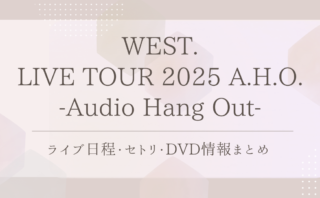 ライブ / 舞台WEST. LIVE TOUR 2025 A.H.O. -Audio Hang Out-|ライブ日程・セトリ・DVD情報まとめ 「WEST. LIVE TOUR 2025 A.H.O. -Audio Hang Out-」を徹底解説!ライブ日程、セトリ、公式YouTube動画やDVD収録内容を紹介します。 2025.09.27ライブ / 舞台