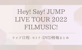 ライブ / 舞台Hey! Say! JUMP LIVE TOUR 2022 FILMUSIC!|ライブ日程・セトリ・DVD情報まとめ 「Hey! Say! JUMP LIVE TOUR 2022 FILMUSIC!」を徹底解説!ライブ日程、セトリ、公式YouTube動画やDVD収録内容を紹介します。 2025.10.04ライブ / 舞台