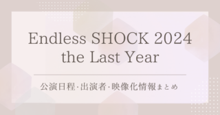 DVD / Blu-rayEndless SHOCK 2024 the Last Year|公演日程・出演者・映像化情報まとめ 「Endless SHOCK 2024 the Last Year」を徹底解説!公演日程、会場、出演者情報、映像化情報をわかりやすく紹介します。 2025.12.28DVD / Blu-rayライブ / 舞台