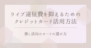 ポイ活 / お金管理ライブ遠征費を抑えるためのクレジットカード活用方法|推し活向けカードの選び方 推し活におすすめのクレジットカードを厳選紹介。ライブ遠征費やグッズ代をお得にする方法や、学生でも作れるカード、ポイ活を活用した節約術までわかりやすく解説します。 2026.04.06ポイ活 / お金管理