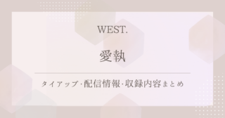 シングルWEST.「愛執」を徹底紹介|タイアップ・配信情報・収録内容まとめ WEST.のシングル「愛執」を詳しく紹介!タイアップ情報やサブスク配信状況、関連動画、収録内容まで、内容をわかりやすくまとめました! 2026.01.18シングル