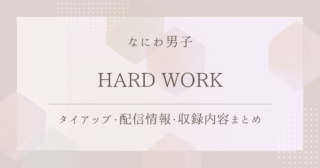 シングルなにわ男子「HARD WORK」を徹底紹介|タイアップ・配信情報・収録内容まとめ なにわ男子のシングル「HARD WORK」を詳しく紹介!タイアップ情報やサブスク配信状況、関連動画、収録内容まで、内容をわかりやすくまとめました! 2026.01.22シングル