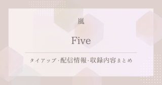シングル嵐「Five」を徹底紹介|タイアップ・配信情報・収録内容まとめ 嵐のシングル「Five」を詳しく紹介!タイアップ情報やサブスク配信状況、関連動画、収録内容まで、内容をわかりやすくまとめました! 2026.01.27シングル