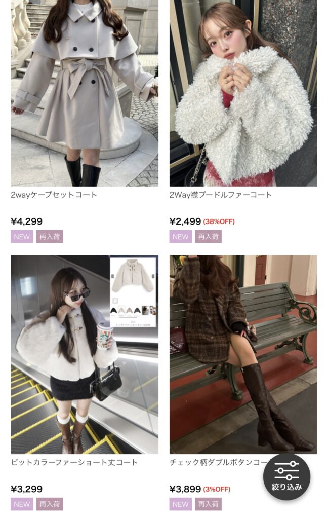 GRLでは、冬に欠かせないあたたかいコートが5,000円以下で手に入ります。トレンド感を取り入れつつも、プチプラとは思えない上質なデザインが特徴。