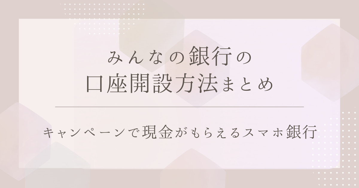 みんなの銀行の口座開設方法まとめ|キャンペーンで現金がもらえるスマホ銀行