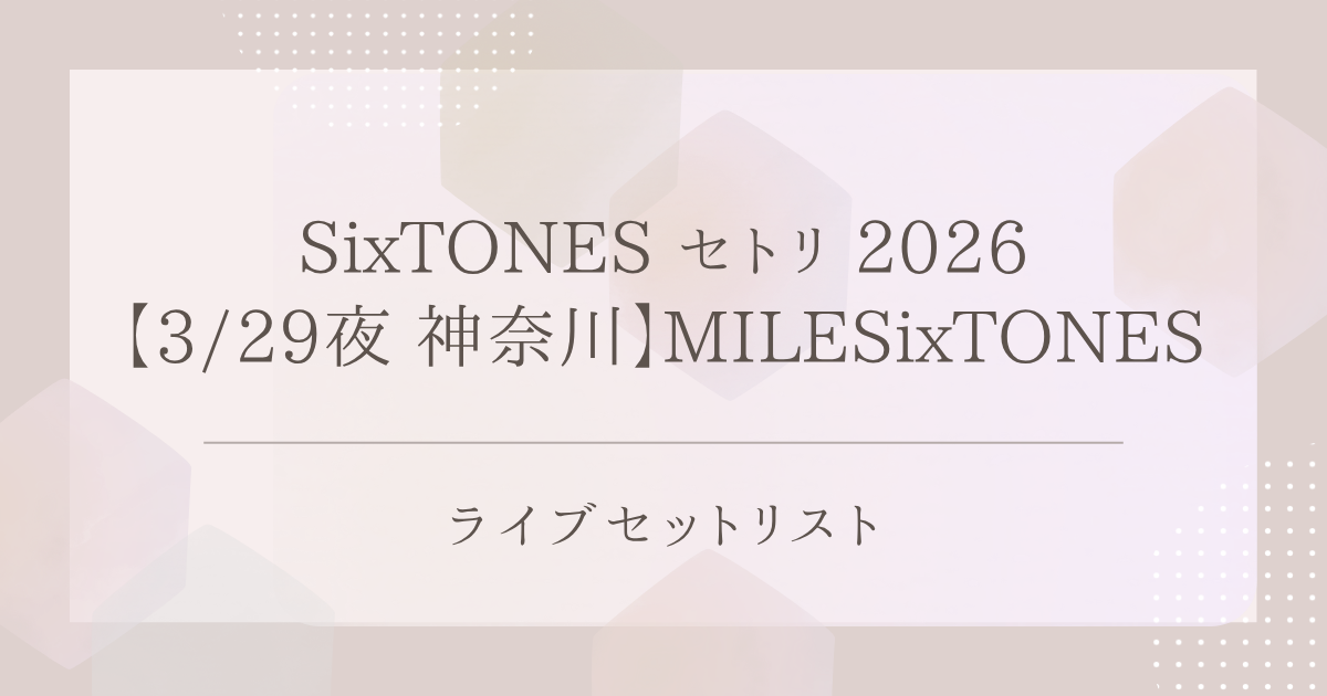 SixTONESの2026年ライブ「MILESixTONES」(3月29日/夜公演)のセットリストをまとめています。