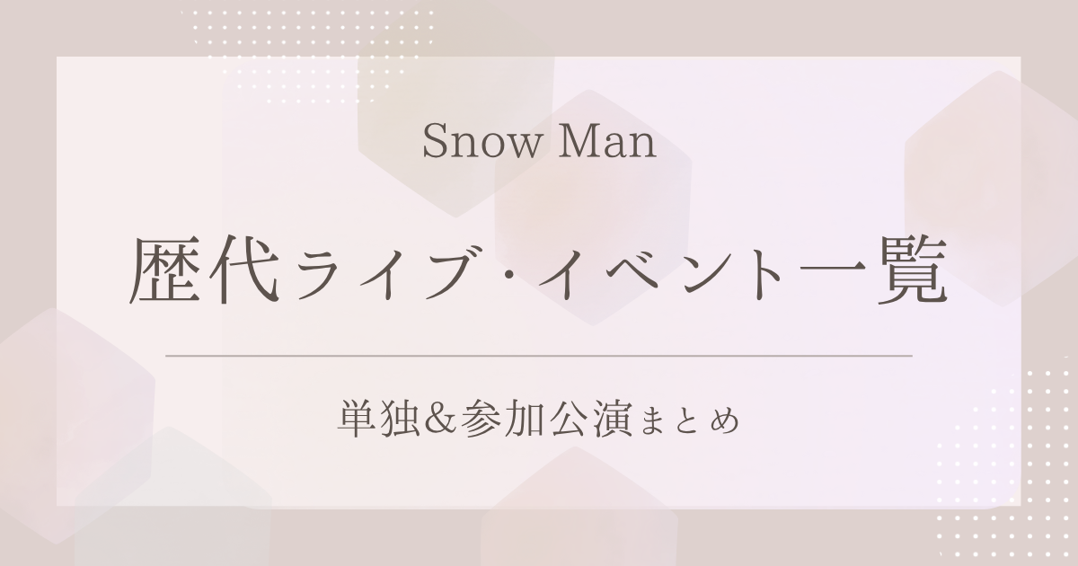Snow Manがこれまでに出演したライブやイベントを、単独公演とその他出演イベントに分けてまとめました。
