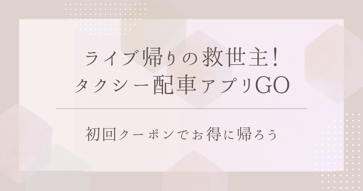 ぜひこの機会に、タクシー配車アプリ「GO(ゴー)」を活用して、ライブ帰りや日常の移動をより快適にしてみてください。