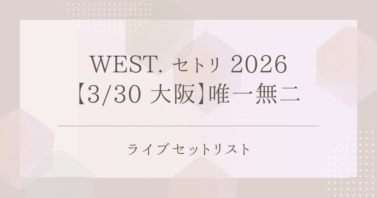 WEST.の2026年ライブ「WEST. LIVE TOUR 2026 唯一無二」(3月30日)のセットリストをまとめています。