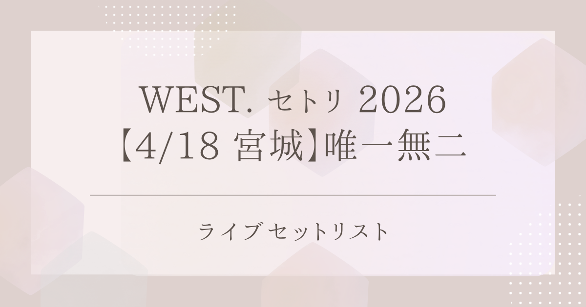 WEST.の2026年ライブ「WEST. LIVE TOUR 2026 唯一無二」(4月18日)のセットリストをまとめています。