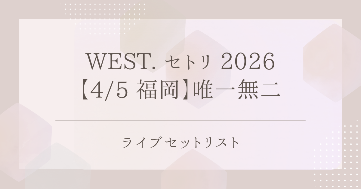 WEST. セトリ 2026【4/5 福岡】唯一無二|ライブセットリスト