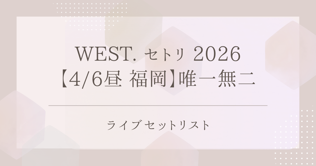 WEST.の2026年ライブ「WEST. LIVE TOUR 2026 唯一無二」(4月6日/昼公演)のセットリストをまとめています。